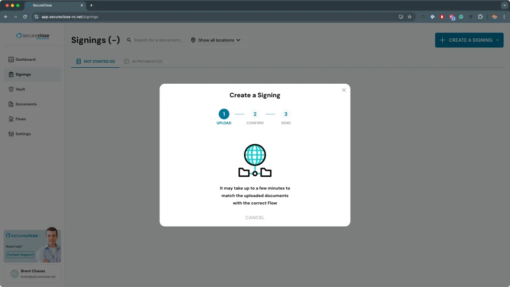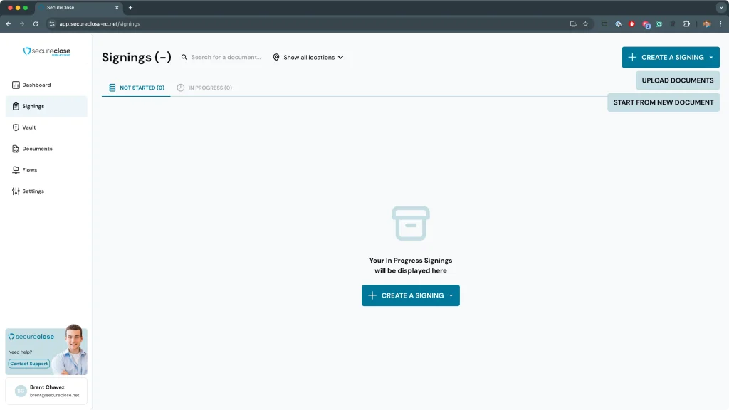 Background: The Signings Tab is where you set up in-person and remote signings, as well as initiate in-person signings. This guide will walk you through the basic setup of uploading PDFs to sign directly to the SecureClose V3 Application. If you are interested in using our Print Driver Client, SecureClose Connect, please see that guide separately.
