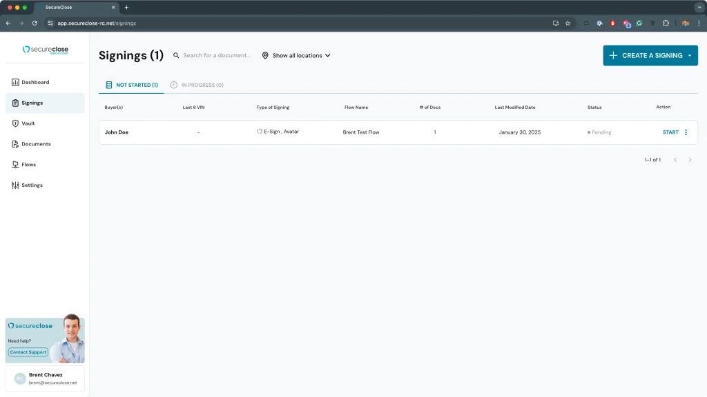 8. Start Signing – Next we will walk through the Signer Experience in SecureClose V3 – That guide can be found HERE.