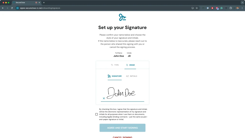 3. Open Link – Upon launching your web browser, the signer will be asked to rotate their device to the horizontal orientation. They will then have the opportunity to draw their signature on their device using their finger or a stylus.